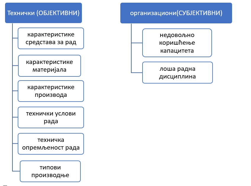 - трошење радне снаге ( пре производње и у току производње, на пословима организације и контроле).